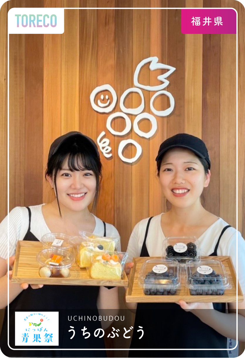 | 農業を始められたきっかけ | 祖父が始めた葡萄の栽培。そこから母に受け継ぎそして妹へ。 自然と共に生まれ育った幼少期。当たり前のように農作業を手伝う中で、農業の面白さ、大変さ、そして今後の日本における農業の危機感を身をもって実感。数少ない女性農家として、若い世代の人にももっと農業に興味を持ってもらいたいと、日々活動をしています。 |