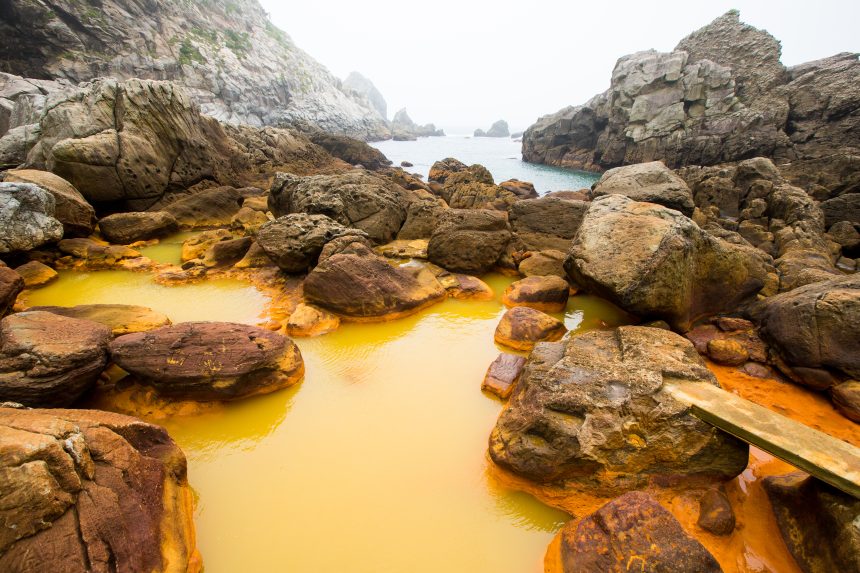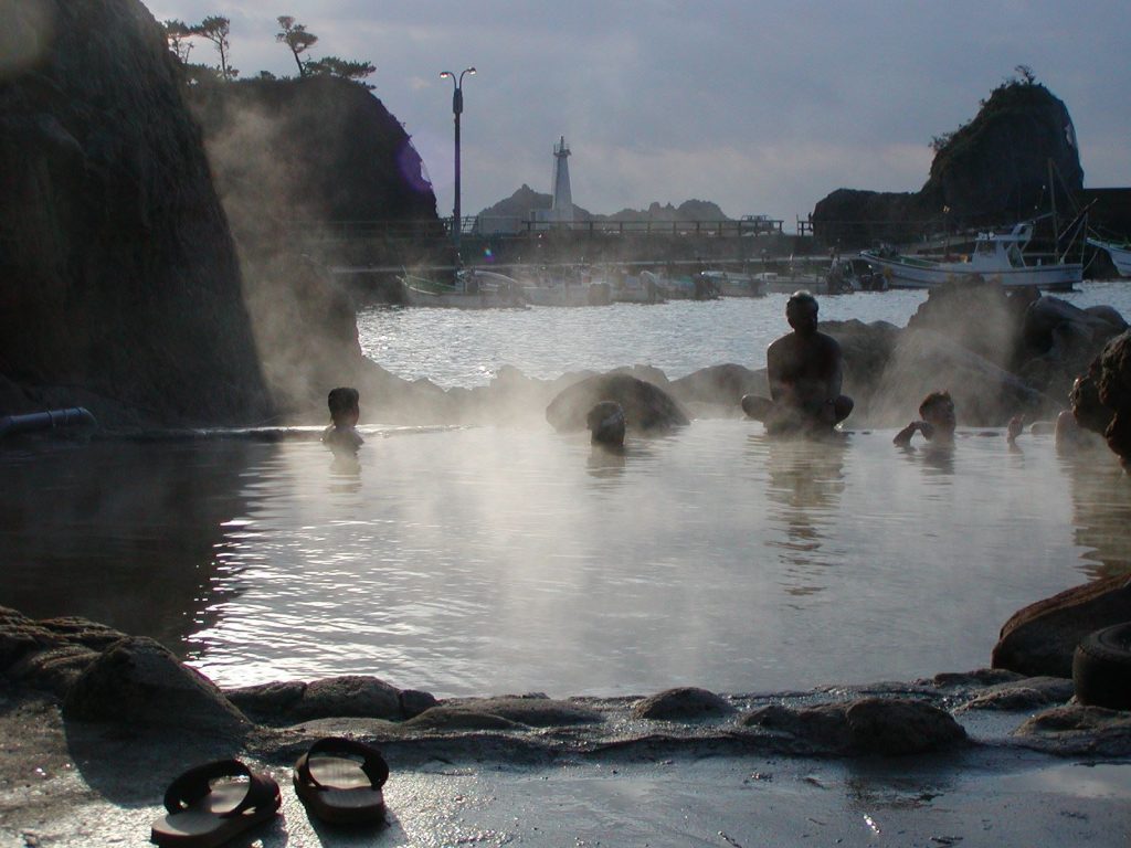 源泉は約80℃ 潮の満ち引きによって入れる時間帯などが変わる「海中温泉」と呼ばれ、目安として満潮の前後1時間~1時間半前後