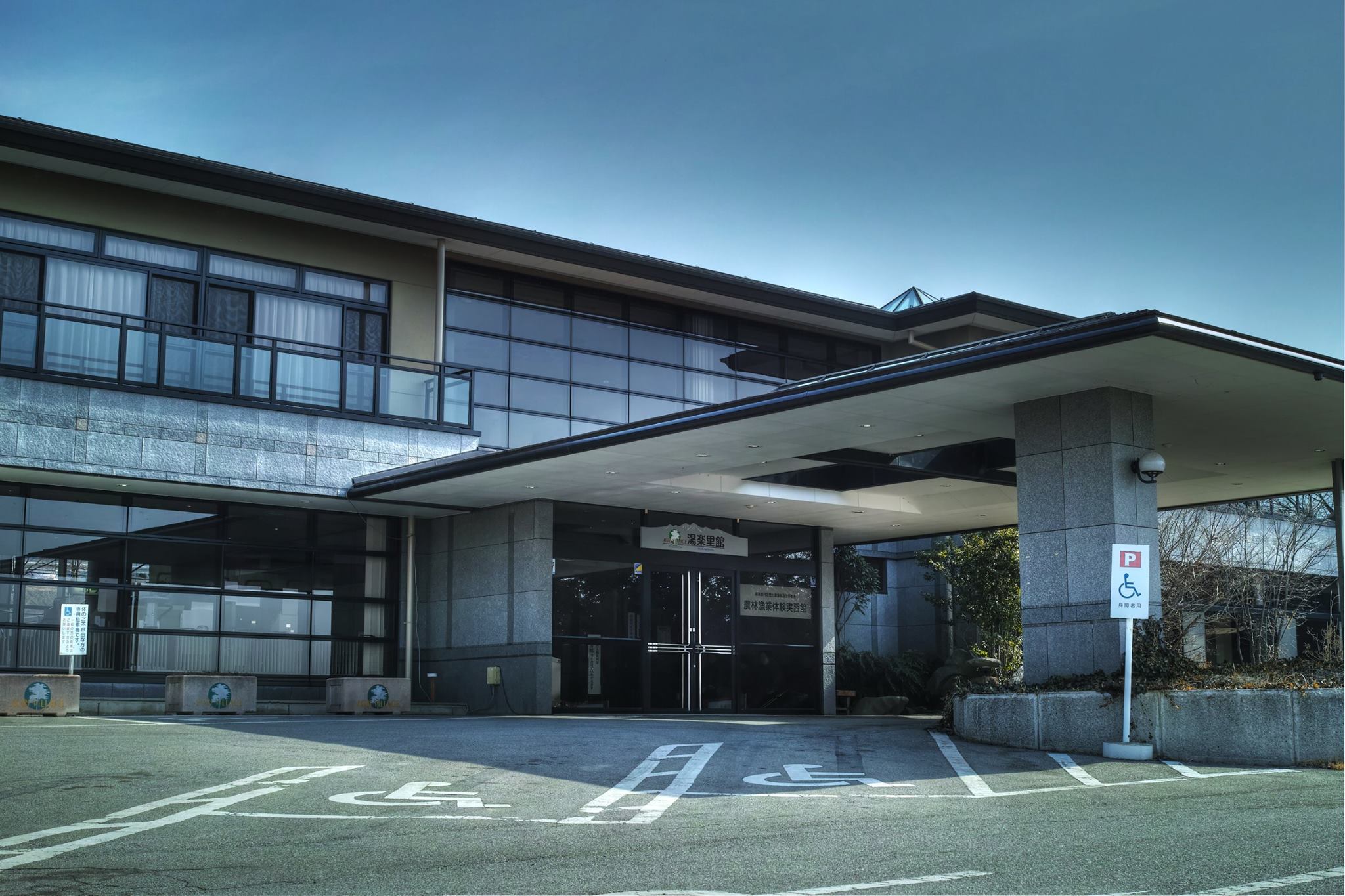 美しい山々とぶどう畑に囲まれた高台に湯楽里館はあります。