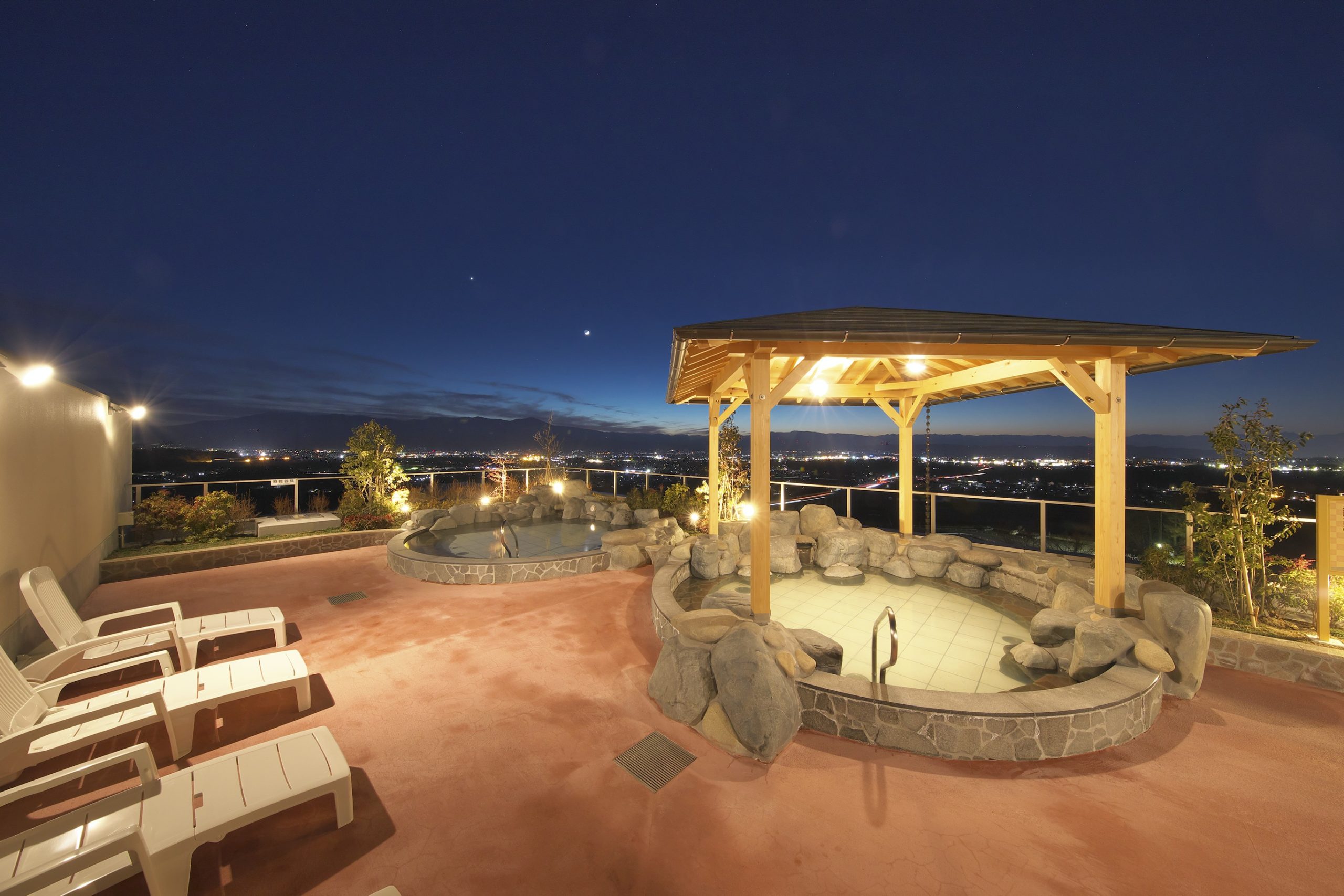 天然温泉を使用した露天風呂は、蓼科山、八ヶ岳連峰を眺望できる圧巻のみはらしです。