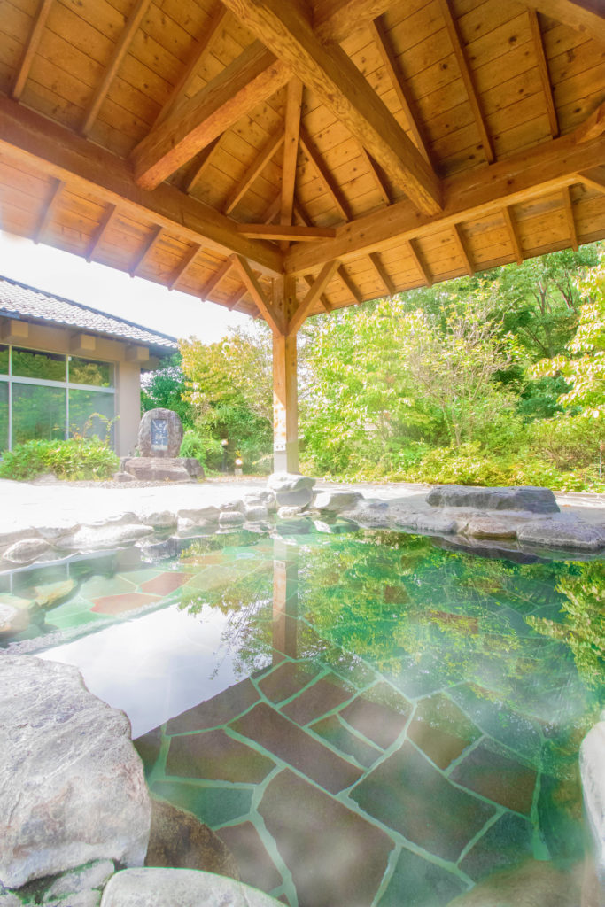 源泉は、pH値9.91の強いアルカリ性の泉質と、泉温32度のぬるい温度であるため、長時間ゆっくり入浴でき、高いリラックス効果が期待できます。