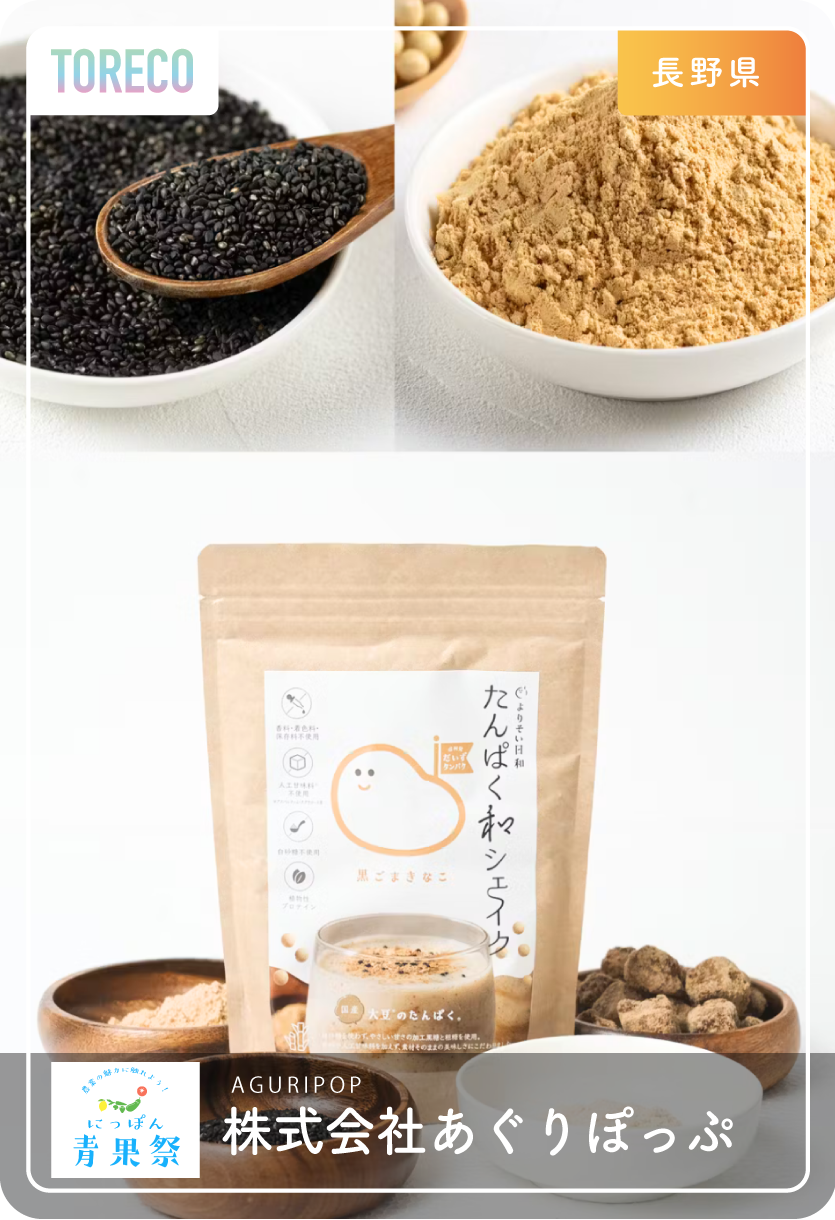 | 特徴 普段活動されていること PRしたいこと | 端材や規格外野菜として破棄される野菜たちをなんとかなくしたい! 農家で手塩をかけて育てたのに処分される畑のもったいない事情をなくすべく、野菜を栄養素をたくさん使ったサプリメントを販売しています。 今回は栄養たっぷりな黒ゴマ商品を始め、様々な商品を販売されるため乞うご期待 |