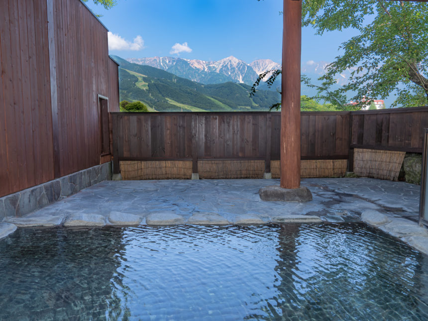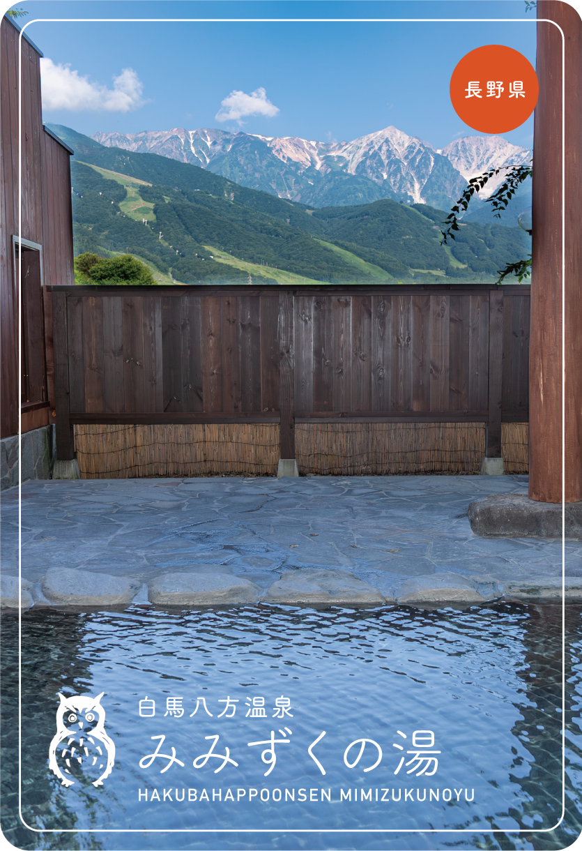 長野県北安曇郡白馬村の白馬八方温泉 みみずくの湯は日本屈指の国際山岳リゾート白馬八方の恵まれた自然の中で、蛇紋岩地帯から湧き出る世界でも希少なpH11を超える日本一の強アルカリ泉。
