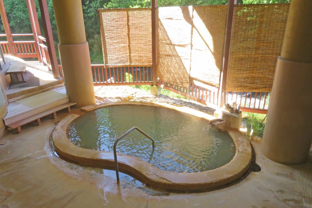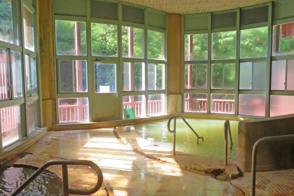 源泉かけ流しの47.2℃、冷泉29.9℃の2種類の屋内風呂と露天風呂、さらに遠赤外線サウナを備えた施設です。