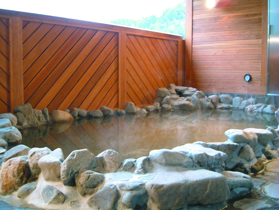 心も体もリフレッシュできる最高の空間です。天井も高く、広々とした大浴場には主浴槽以外に、あつめの湯、ぬるめの湯、サウナには欠かせない水風呂と4つの浴槽をご用意しております。また、当館自慢の露天風呂は、山村の風景の中、川のせせらぎを聞きながら、ゆったりと寛げます。さらに時間制で貸し切りの家族風呂は露天風呂も完備で大人気です。
