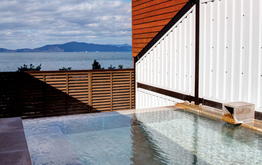 熊本県水俣市の湯の児 海と夕やけは目の前に広がる「不知火(しらぬい)海」越しに、対岸の天草の島影を正面に臨むことができるコンパクトな露天風呂です。ここから眺める海と夕日の美しさは、熊本県の不知火海沿岸では比べる場所がないほどの絶景です。