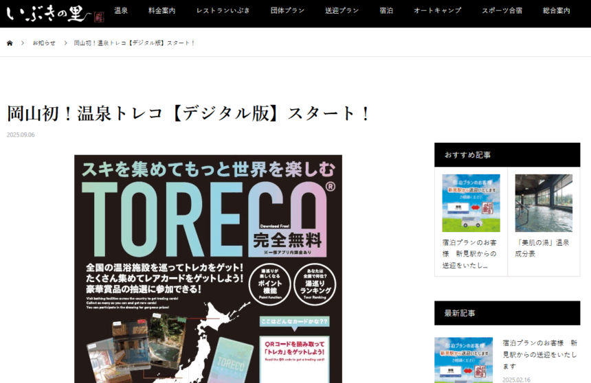 岡山県の施設で初!新見千屋温泉いぶきの里様(新見市千屋花見)で「温泉トレコ」のデジタル版サービスが開始されました!