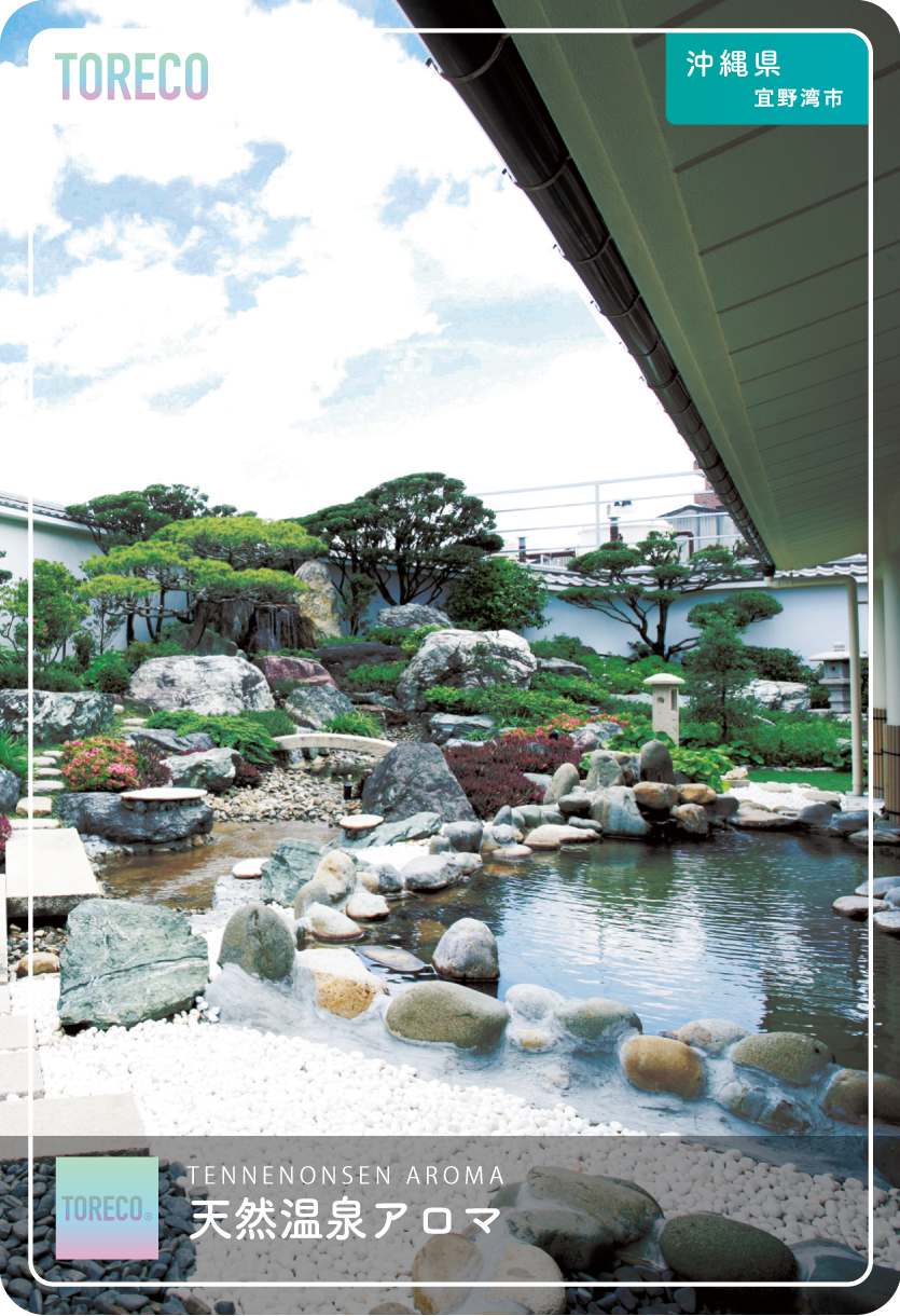 沖縄で唯一、日本庭園風の露天風呂で温泉入浴が堪能できるのが天然温泉アロマです。