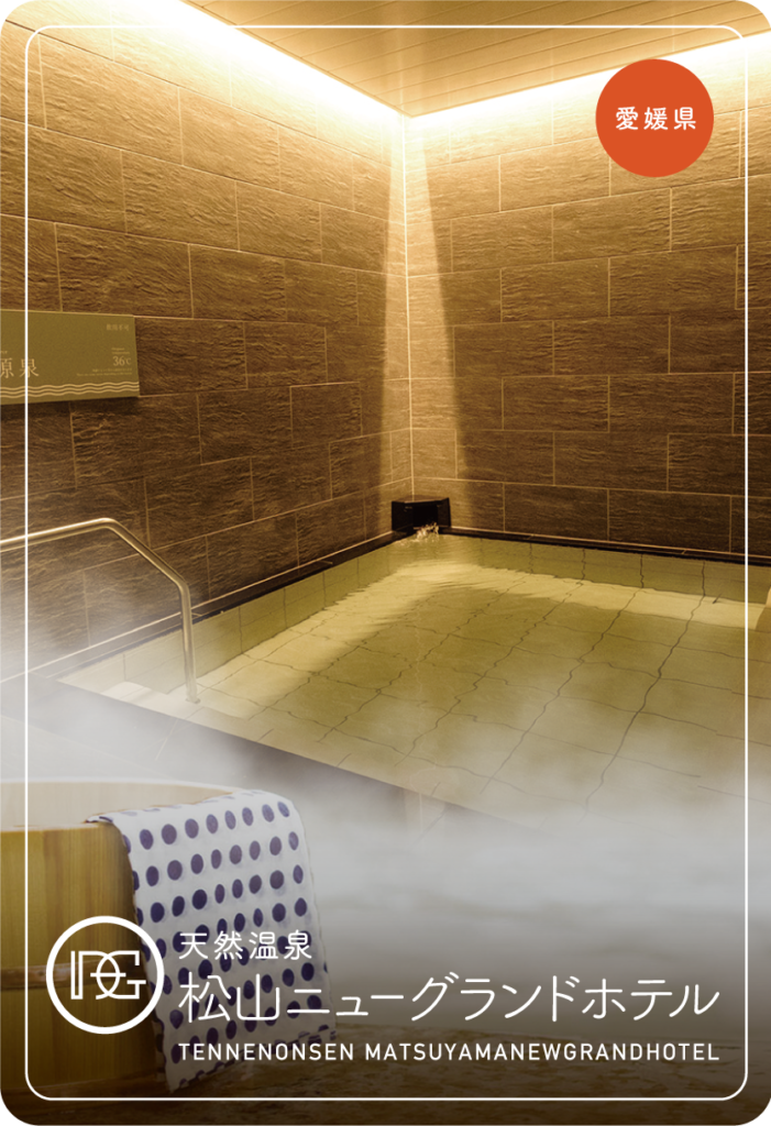 愛媛県松山市の天然温泉 松山ニューグランドホテルは、地下670mから引く源泉を100%かけ流しの天然温泉。Ph8.9の良質アルカリ泉は、とても柔らかい泉質で石鹸の効きが良く美肌効果が抜群!