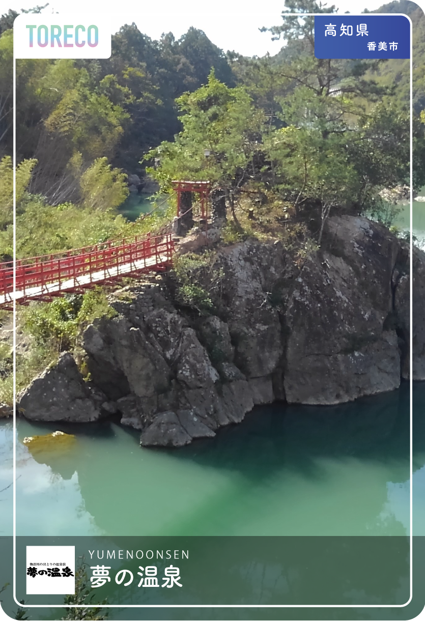 | おすすめポイント | 高知県の山あいに佇む「夢の温泉」は、豊かな自然に包まれた癒やしの湯処です。物部川河畔で四季折々の山の景観を眺めながら、ゆったりとした時間を過ごせます。泉質は肌にやさしく、美肌効果も期待できると評判。地元食材を使った料理も魅力で、心身ともにリフレッシュできる温泉地として親しまれています。 |