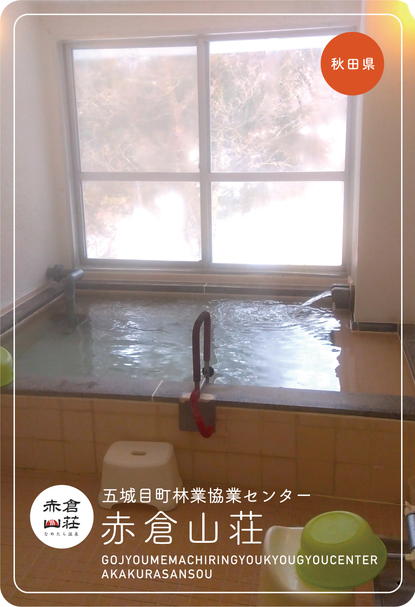 秋田県南秋田郡五城目町の五城目町林業協業センター 赤倉山荘は、源泉~その歴史は古く、正保年間(1644年~1648年)の記録が残っていることから、すでに開湯350年以上経過しています。