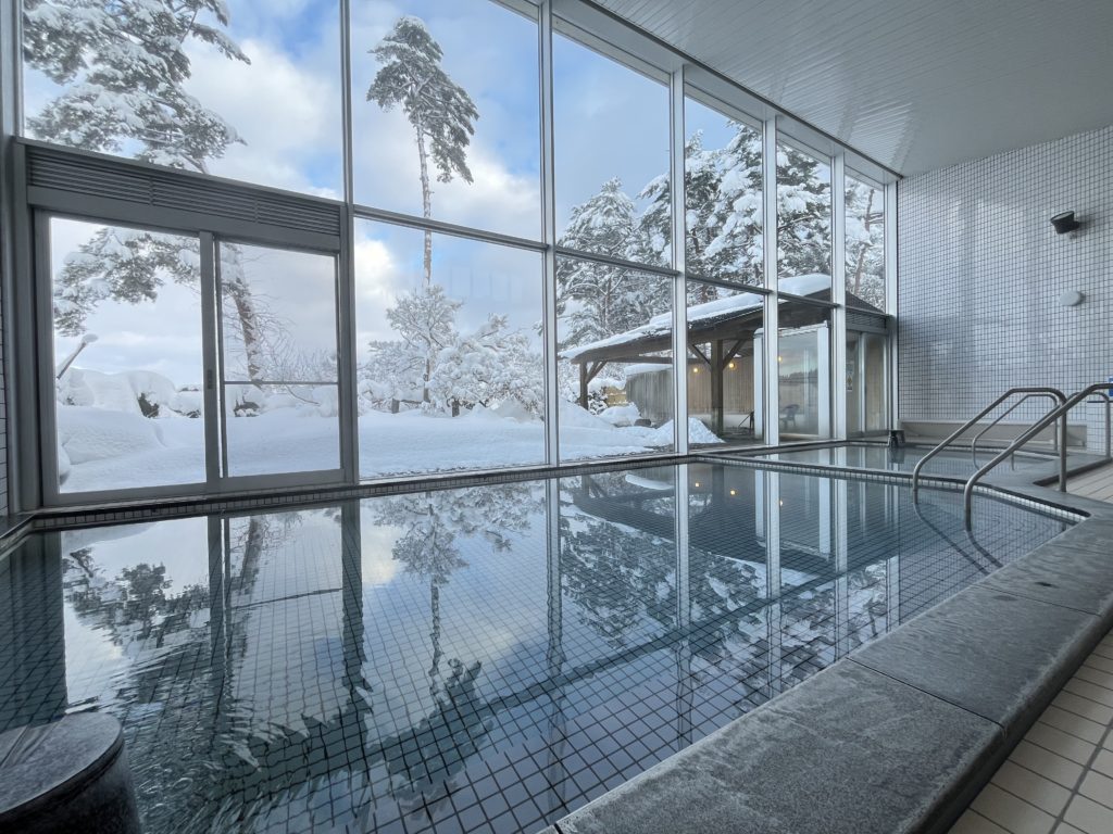一面ガラス張りのお風呂は開放感にあふれ、眺める景色は四季折々を映して圧巻です。