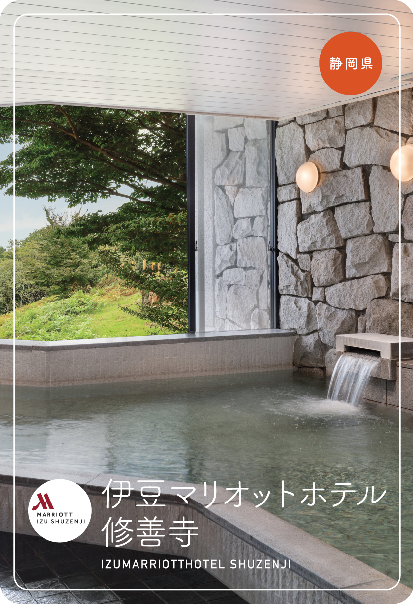 静岡県伊豆市の伊豆マリオットホテル 修善寺。日本百名湯の一つである伊豆修善寺温泉は、開湯1,200年を超える伊豆半島で最も歴史のある名湯です。